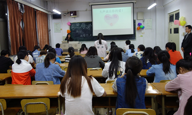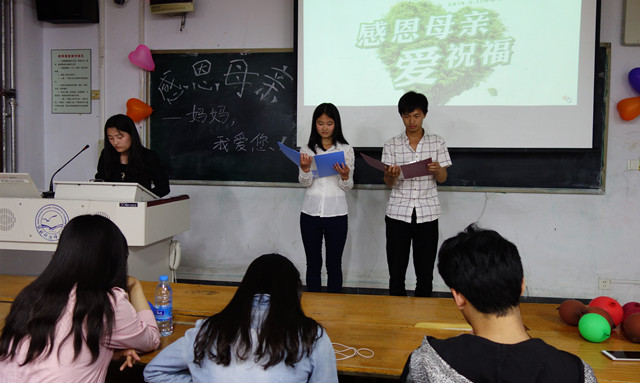 活动以歌曲《母亲》为开场曲,播放母亲妊娠和陪伴孩子慢慢长大的图片,讲述母亲的扶养子女的辛苦和付出。随后,进行了诗歌朗诵、观看微电影环节。之后的“大声说出来吧”互动环节将本次活动推向高潮,同学们都大声地表达了自己对母亲的爱。最后全体同学合唱《母亲》,在暖暖的歌声中结束了本次活动。