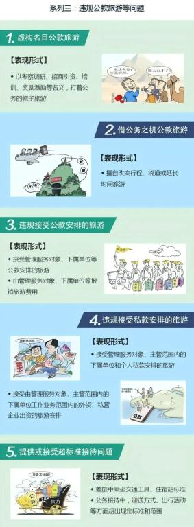 5.公款旅游以及违规接受管理和服务对象等旅游活动安排;