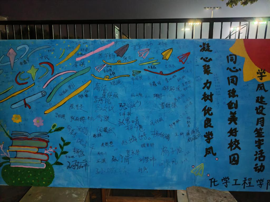 签名现场气氛活跃,同学们在展牌上认真地签下了自己的名字,将拼搏奋进的热情在字里行间传递并与签名展板合影留念。工作人员与同学们分享了学习心得,希望大家端正学习态度,树立学风建设从我做起的意识,让学风建设内涵内化于心、外化于行。同学们表示将会以饱满的热情通过自身行为助力公司优良学风建设。