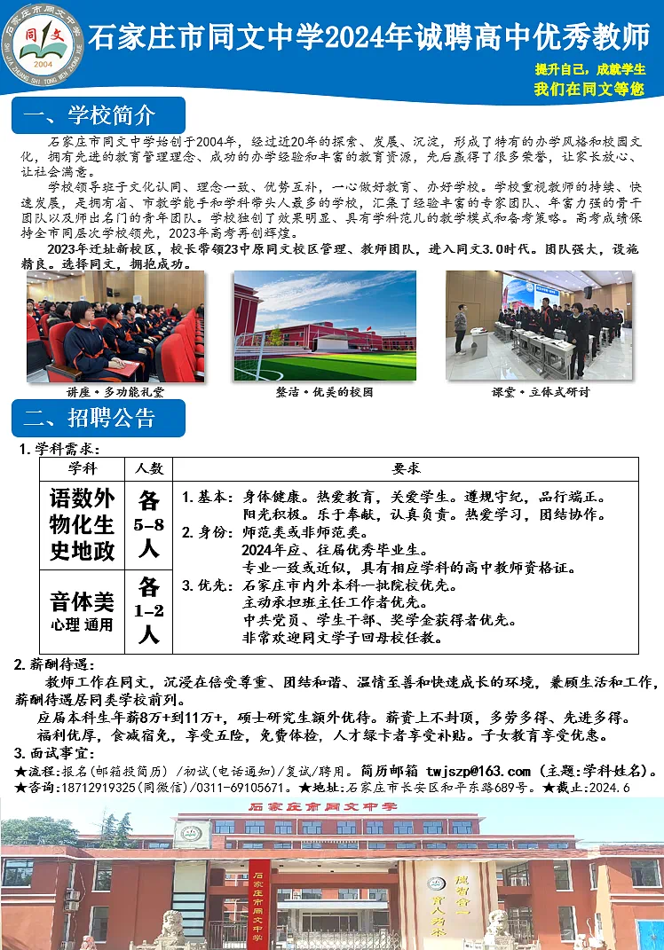 石家庄市同文中学招聘简章